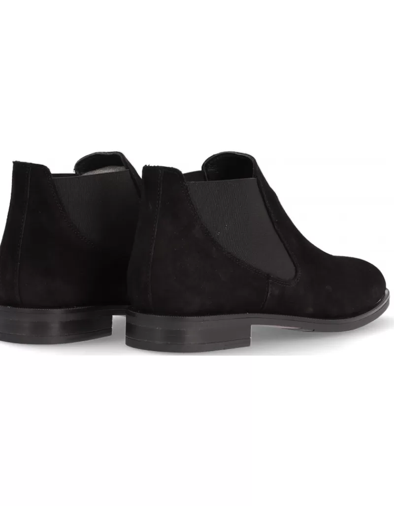 Ankle Boots Para Woman Alpe Parker, Fabricado En Piel (Baby Silk Gliter) De Color Black Con Tacon De 3,5 Cm, Suela Antideslizante Y Puntera Rounded, Sin Cierre Y Cana Low.