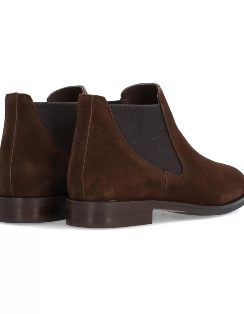 Ankle Boots Para Woman Alpe Parker, Fabricado En Piel (Baby Silk Gliter) De Color Arabica Con Tacon De 3,5 Cm, Suela Antideslizante Y Puntera Rounded, Sin Cierre Y Cana Low.
