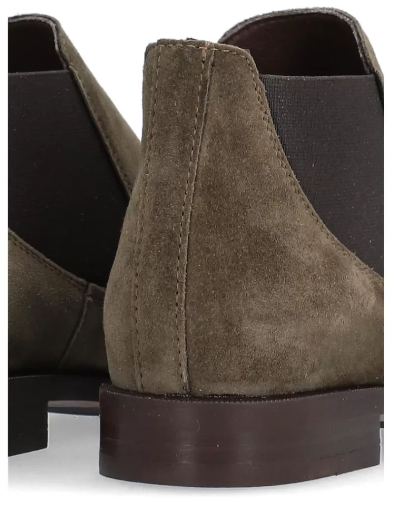 Ankle Boots Para Woman Alpe Parker, Fabricado En Piel (Baby Silk Gliter) De Color Kaki Con Tacon De 3,5 Cm, Suela Antideslizante Y Puntera Rounded, Sin Cierre Y Cana Low.