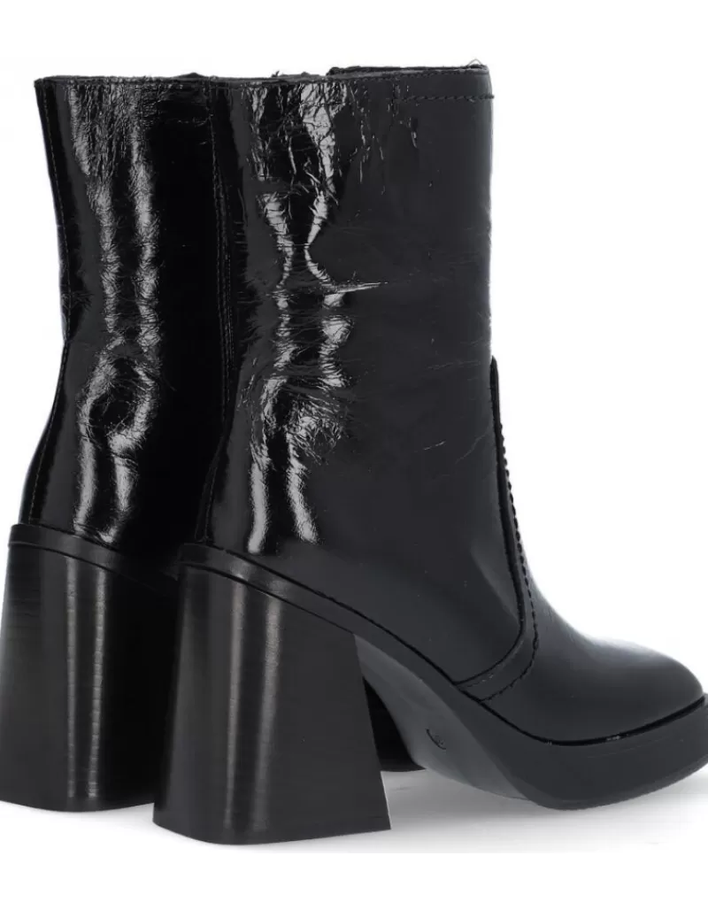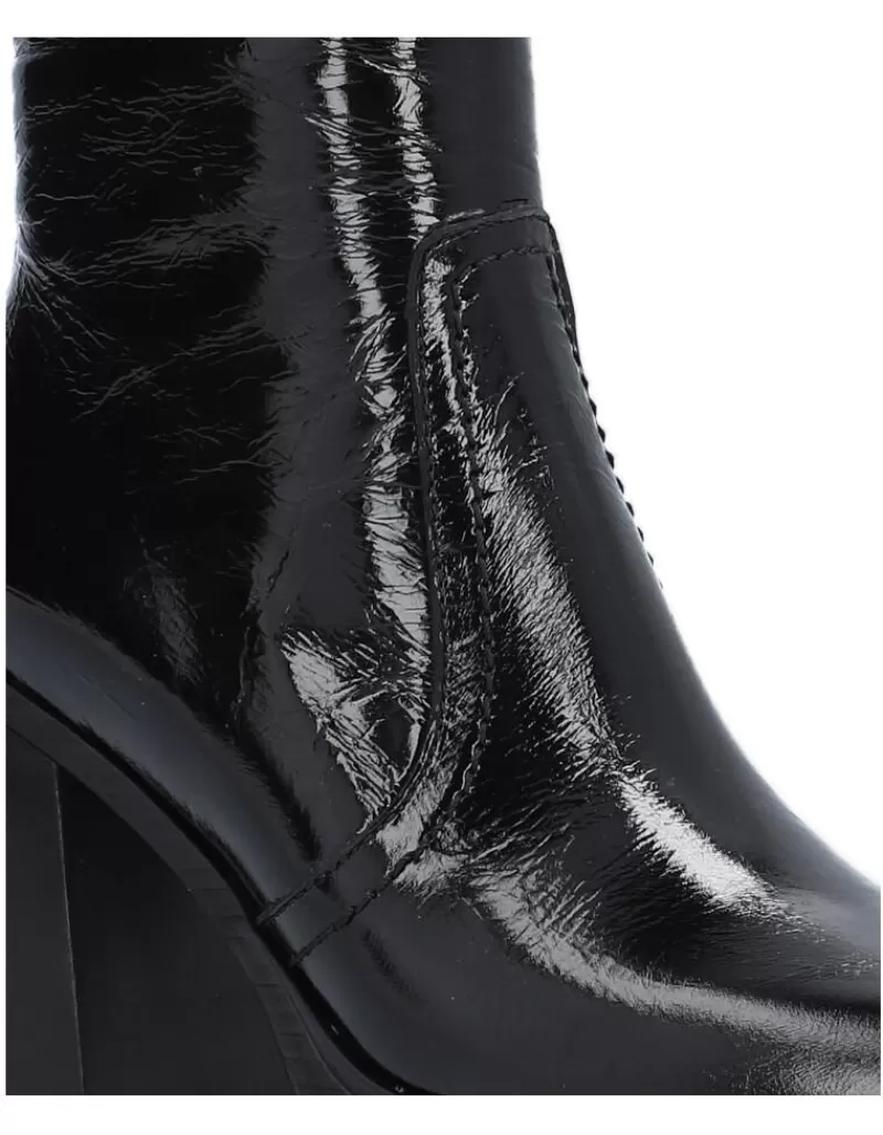 Boots Para Woman Alpe Retro, Fabricado En Piel (Vernice) De Color Black Con Tacon De 9,5 Cm, Suela Antideslizante Y Puntera Cuadrada, Con Cierre Mediante Cremallera Y Cana Medium.