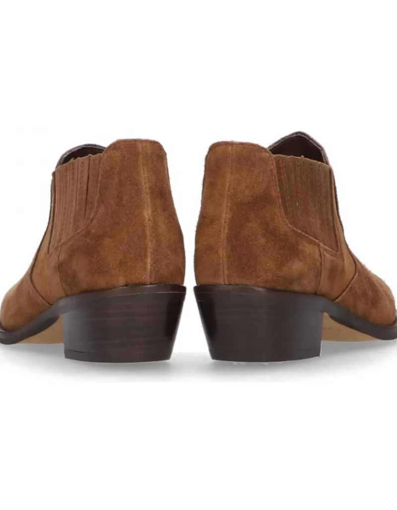Botin Para Mujer Alpe Rose, Fabricado En Piel (Baby Silk) De Color Castaa Con Tacon De 4 Cm, Suela Antideslizante Y Puntera Afilada, Sin Cierre Y Cana Baja.