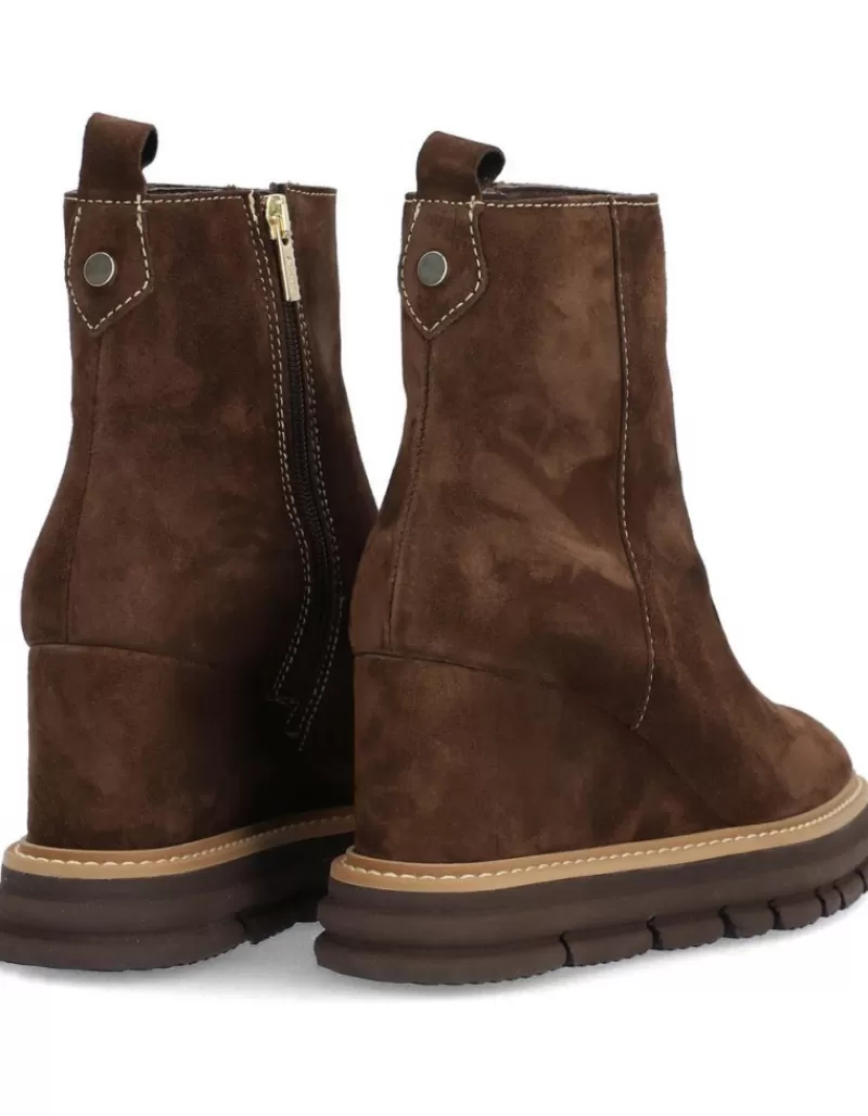 Botin Para Mujer Alpe Sidney, Fabricado En Piel (Baby Silk) De Color Arabica Con Cuna De 8 Cm, Suela Antideslizante Y Puntera Redonda, Con Cierre Mediante Cremallera Y Cana Media.