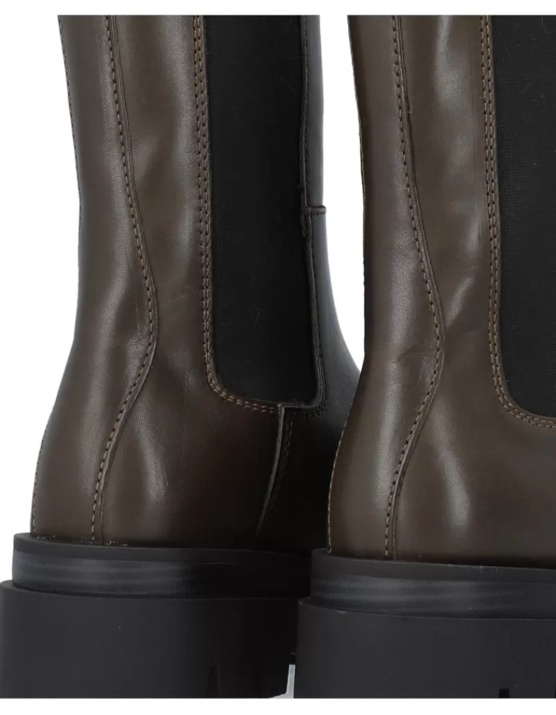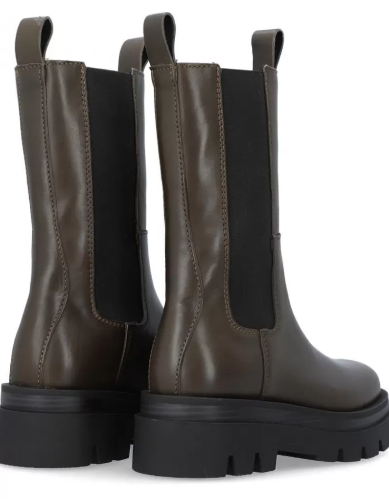 Boots Para Woman Alpe Soho, Fabricado En Piel (Becerro) De Color Olive Con Tacon De 5 Cm, Suela Antideslizante Y Puntera Rounded, Sin Cierre Medium.