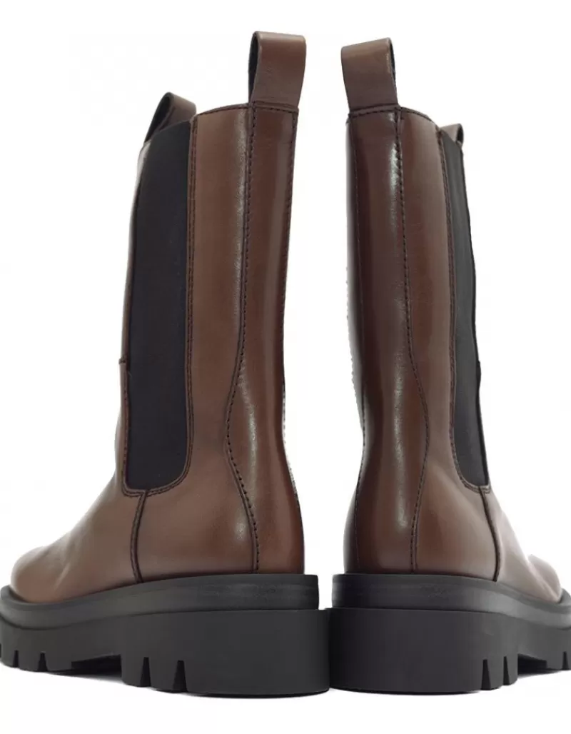 Boots Para Woman Alpe Soho, Fabricado En Piel (Ball Lux) De Color Brown Con Tacon De 5 Cm, Suela Antideslizante Y Puntera Rounded, Sin Cierre Y Cana Medium.