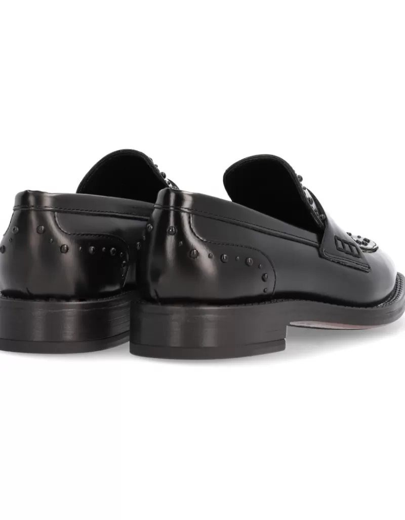 Zapato Para Mujer Alpe Thelma, Fabricado En Piel (Antic) De Color Negro Con Tacon De 3 Cm, Suela Antideslizante Y Puntera Cuadrada, Sin Cierre.