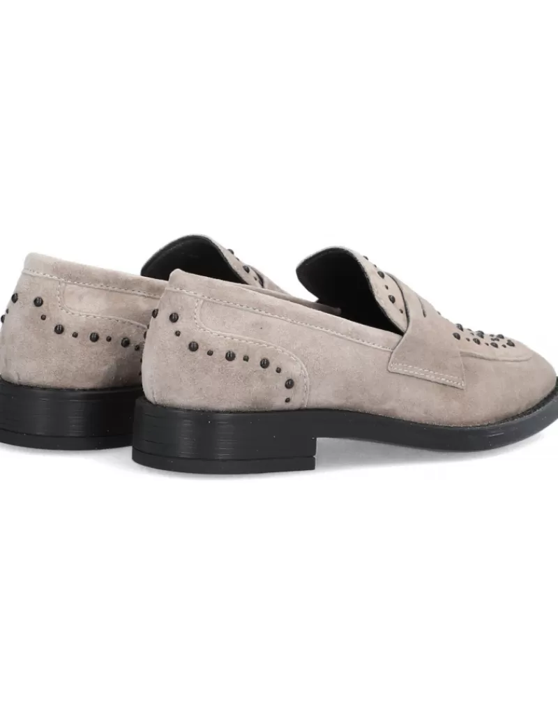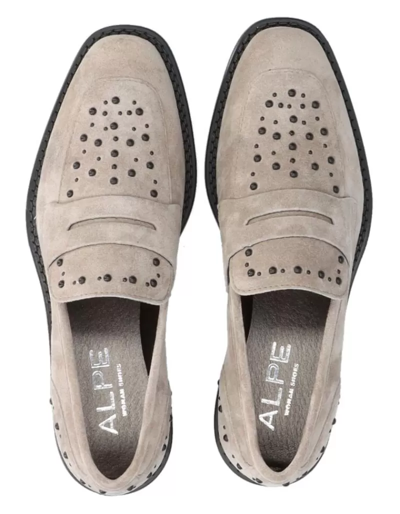 Shoes Para Woman Alpe Thelma, Fabricado En Piel (Baby Silk Gliter) De Color Taupe Con Tacon De 3 Cm, Suela Antideslizante Y Puntera Cuadrada, Sin Cierre.