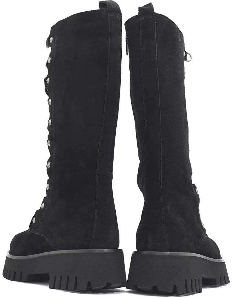 Boots Para Woman Alpe Tokio, Fabricado En Piel (Baby Silk Gliter) De Color Black Con Plataforma De 5 Cm, Suela Antideslizante Y Puntera Rounded, Con Cierre Mediante Cremallera Long.