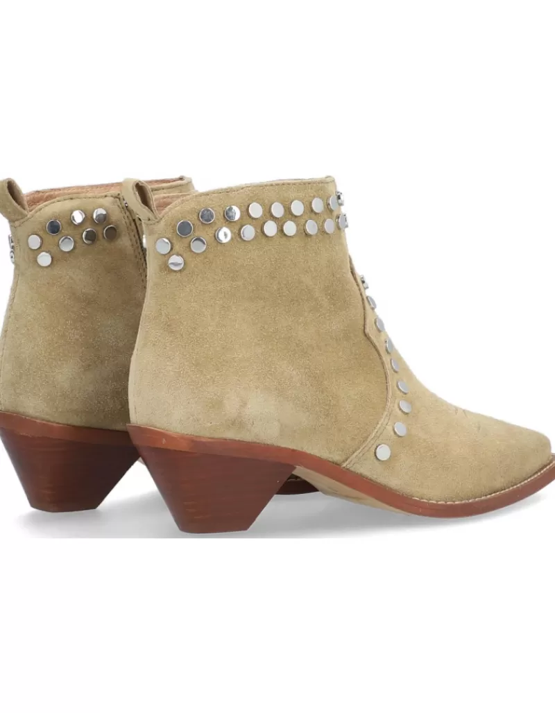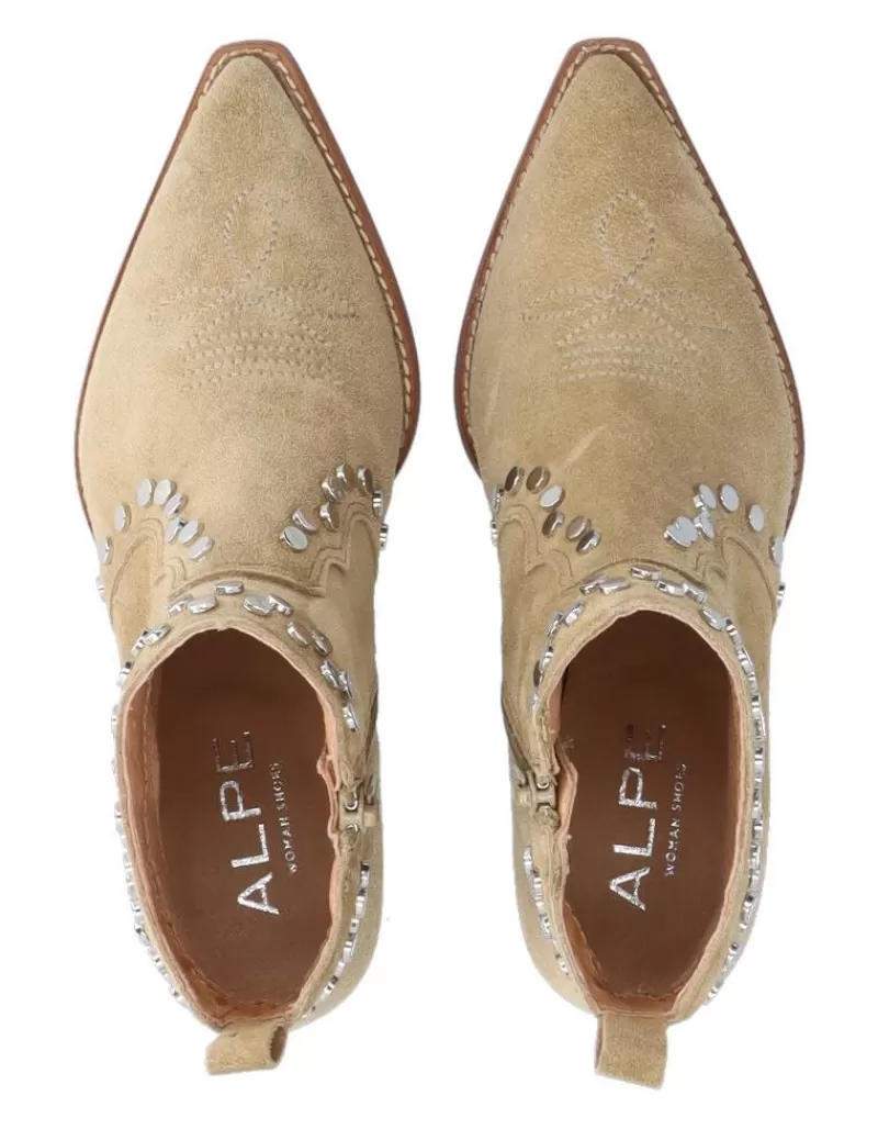 Ankle Boots Para Woman Alpe Trendy, Fabricado En Piel (Baby Silk Gliter) De Color Tabaco Con Tacon De 4,5 Cm, Suela Antideslizante Y Puntera Afilada, Con Cierre Mediante Cremallera Y Cana Low.