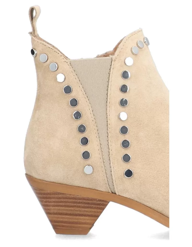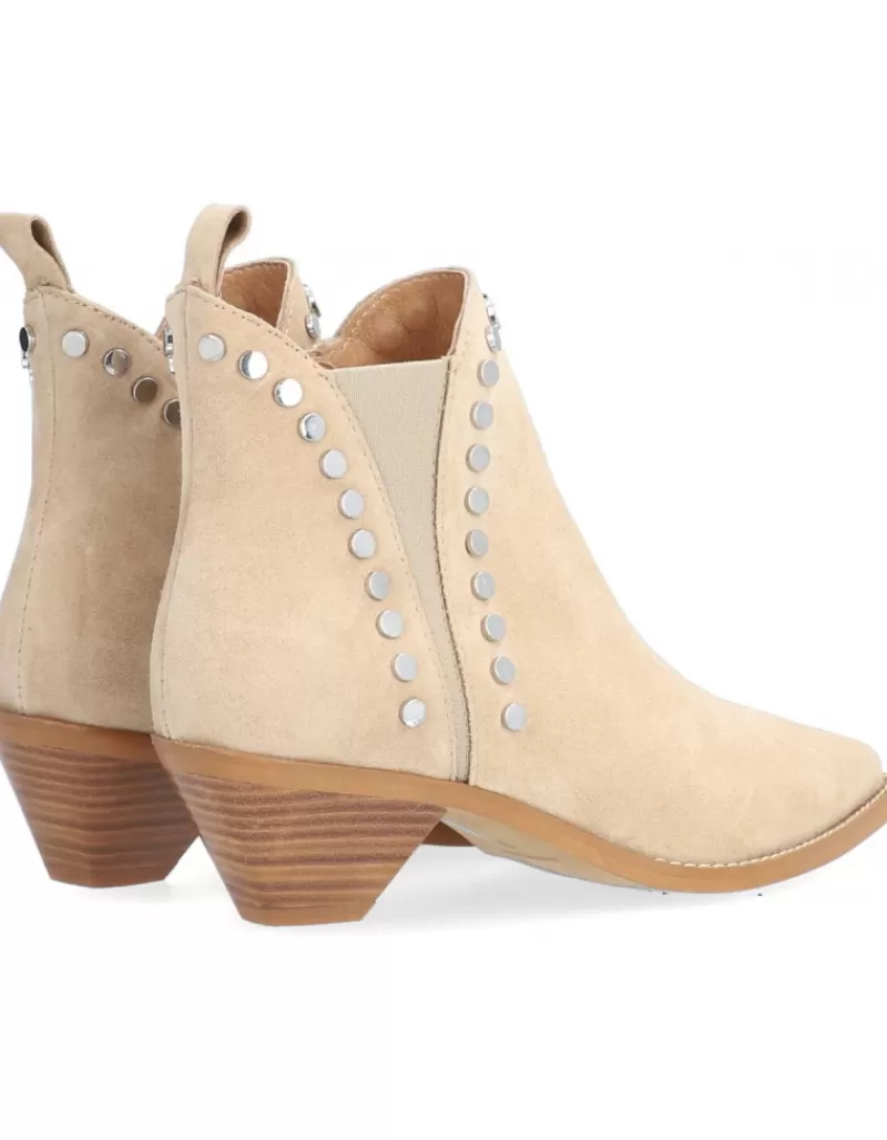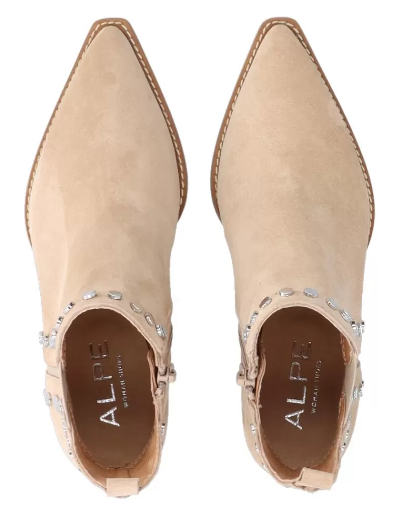 Ankle Boots Para Woman Alpe Trendy, Fabricado En Piel (Baby Silk Gliter) De Color Sand Con Tacon De 4,5 Cm, Suela Antideslizante Y Puntera Afilada, Con Cierre Mediante Cremallera Y Cana Low.