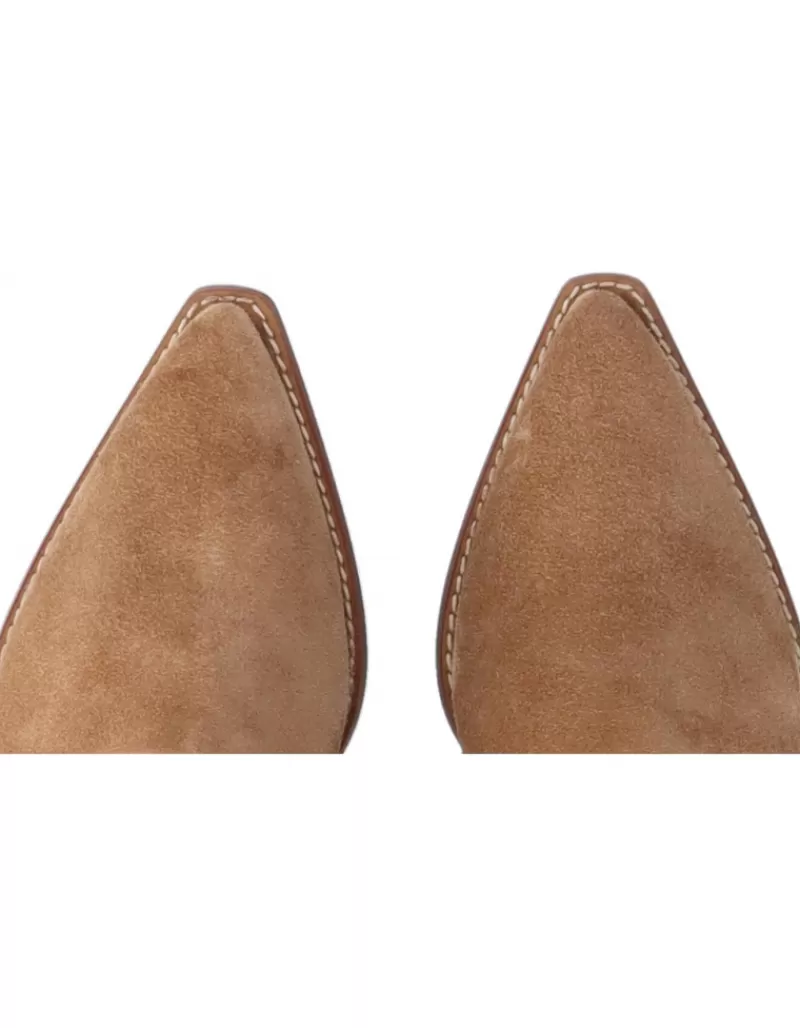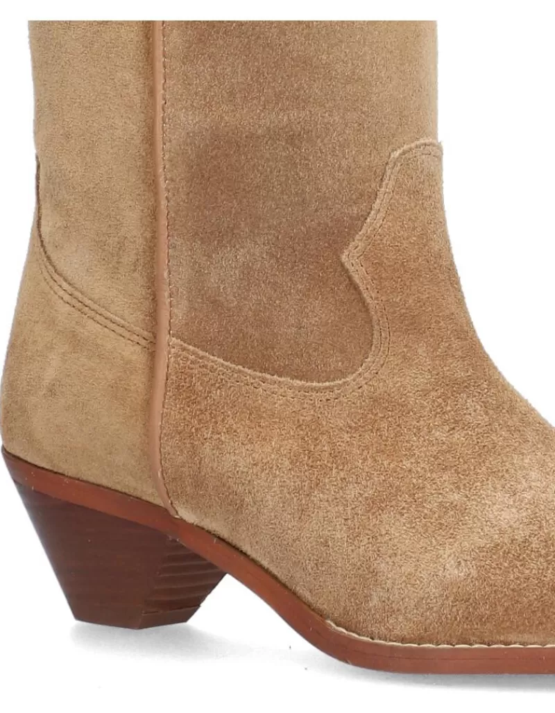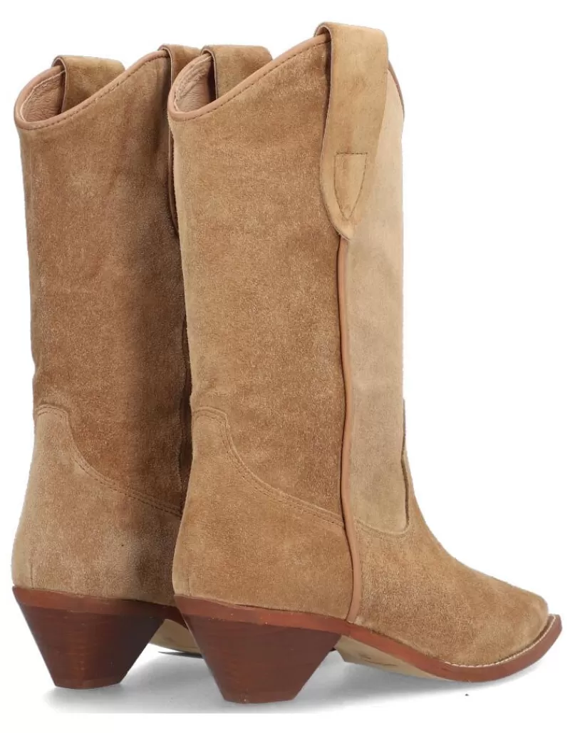 Boots Para Woman Alpe Trendy, Fabricado En Piel (Baby Silk Gliter) De Color Cuero Con Tacon De 4,5 Cm, Suela Antideslizante Y Puntera Afilada, Sin Cierre Y Cana Medium.