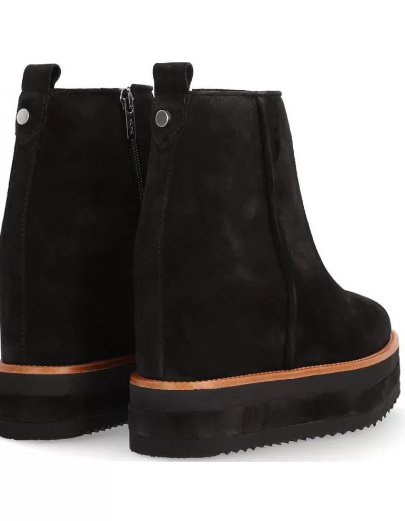 Botin Para Mujer Alpe Vanity, Fabricado En Piel (Baby Silk) De Color Negro Con Cuna Oculta De 8,5 Cm, Suela Antideslizante Y Puntera Redonda, Con Cierre Mediante Cremallera Y Cana Baja.