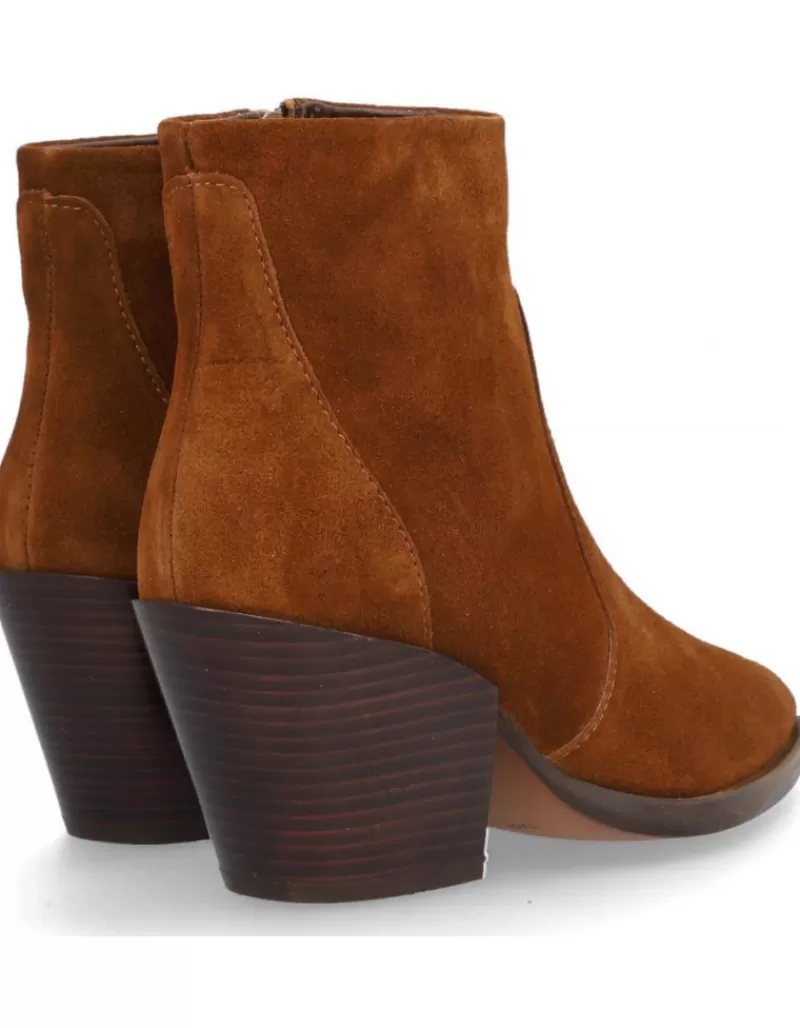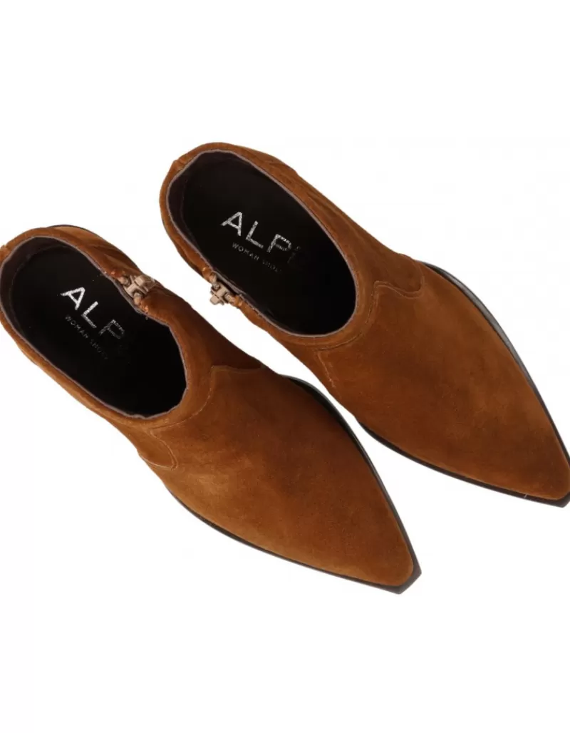 Ankle Boots Para Woman Alpe Vermont, Fabricado En Piel (Baby Silk Gliter) De Color Cuero Con Tacon De 6,5 Cm, Suela Antideslizante Y Puntera Afilada, Con Cierre Mediante Cremallera Y Cana Low.