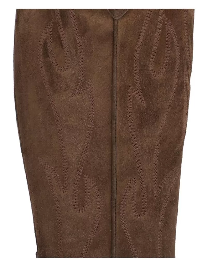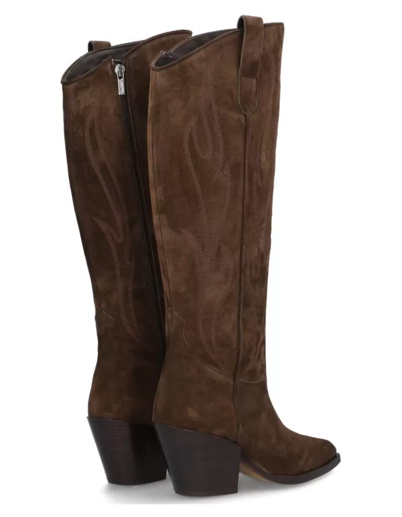Boots Para Woman Alpe Vermont, Fabricado En Piel (Baby Silk Gliter) De Color Arabica Con Tacon De 6,5 Cm, Suela Antideslizante Y Puntera Afilada, Con Cierre Mediante Cremallera Y Cana Long.