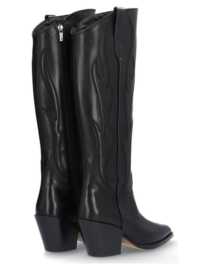 Boots Para Woman Alpe Vermont, Fabricado En Piel (Becerro) De Color Black Con Tacon De 6,5 Cm, Suela Antideslizante Y Puntera Afilada, Con Cierre Mediante Cremallera Y Cana Long.