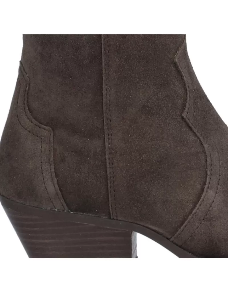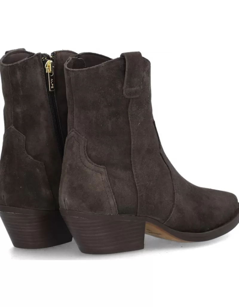 Ankle Boots Para Woman Alpe Western, Fabricado En Piel (Baby Silk Gliter) De Color Iman Con Tacon De 4,5 Cm, Suela Antideslizante Y Puntera Afilada, Con Cierre Mediante Cremallera Y Cana Low.