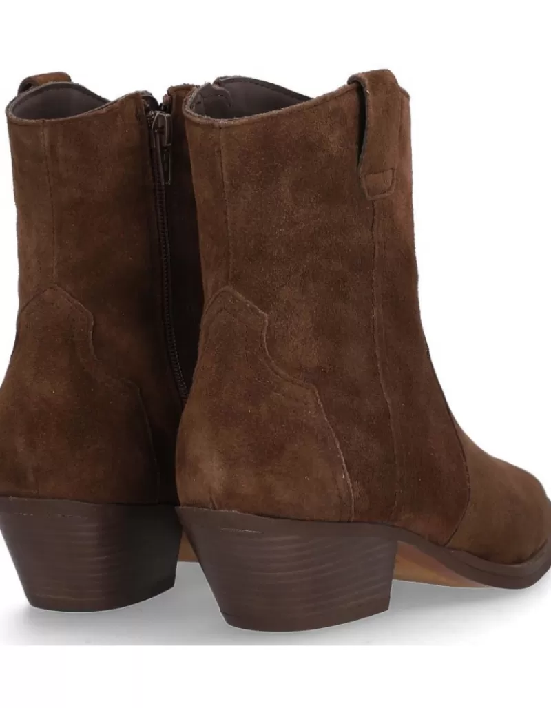 Ankle Boots Para Woman Alpe Western, Fabricado En Piel (Baby Silk Gliter) De Color Arabica Con Tacon De 4,5 Cm, Suela Antideslizante Y Puntera Afilada, Con Cierre Mediante Cremallera Y Cana Low.