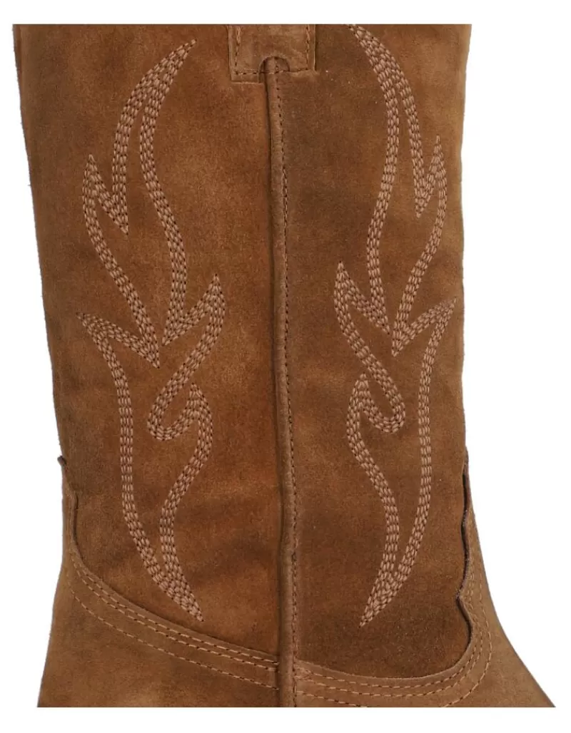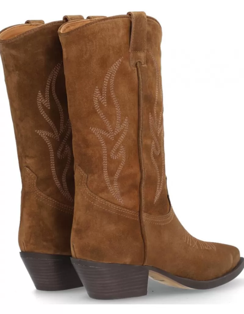 Boots Para Woman Alpe Western, Fabricado En Piel (Baby Silk Gliter) De Color Cuero Con Tacon De 4,5 Cm, Suela Antideslizante Y Puntera Afilada, Sin Cierre Y Cana Medium.